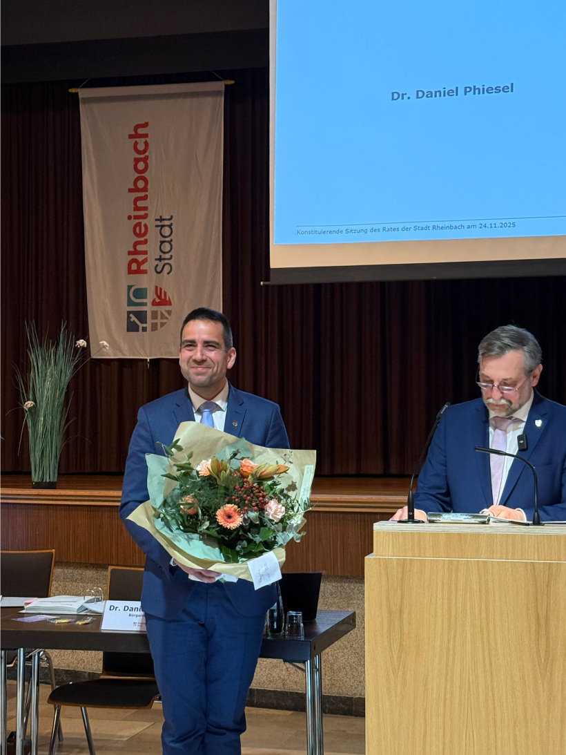 In seiner Antrittsrede betonte er die Bedeutung eines offenen und respektvollen Dialogs untereinander und mit allen Bürgerinnen und Bürgern sowie das gemeinsame Bemühen um eine konstruktive und gesunde politische Kultur, damit gute tragfähige Lösungen gefunden und extreme Einflüsse keinen Raum in Rheinbach erhalten.