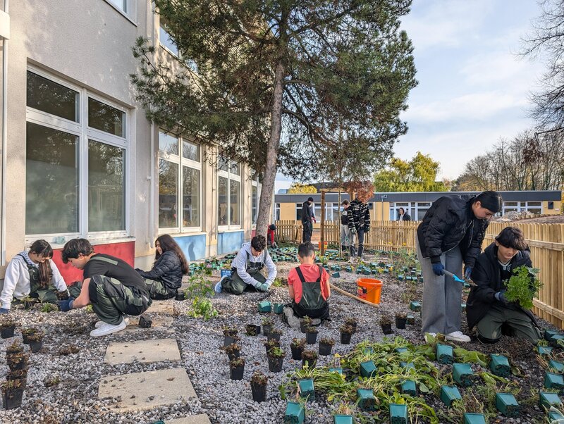 Schülerinnen und Schüler waren aktiv beteiligt – sie wählten Pflanzen mit aus, halfen bei der Pflanzung und übernehmen gemeinsam mit Lehrkräften und der Stadt Verantwortung für die Pflege. So wird Klimaanpassung konkret erlebbar und im Schulalltag verankert.