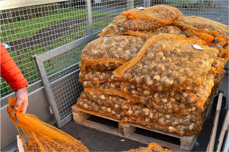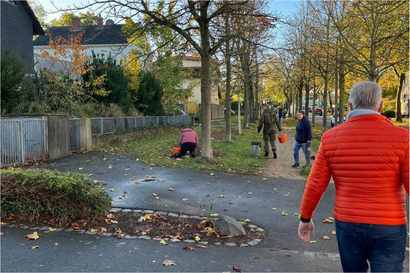 Am Donnerstag, 30. Oktober haben Mitarbeitende der Stadt Rheinbach und der Bundeswehr etwa 9.000 Blumenzwiebeln rund um die Kastanien in der Martinstraße in Rheinbach gesetzt.