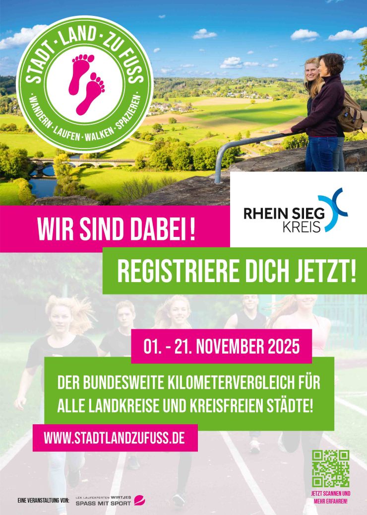 Gemeinsam Schritte sammeln – Der Rhein-Sieg-Kreis ist 2025 bei der Aktion „Stadt – Land – zu Fuß“ dabei!