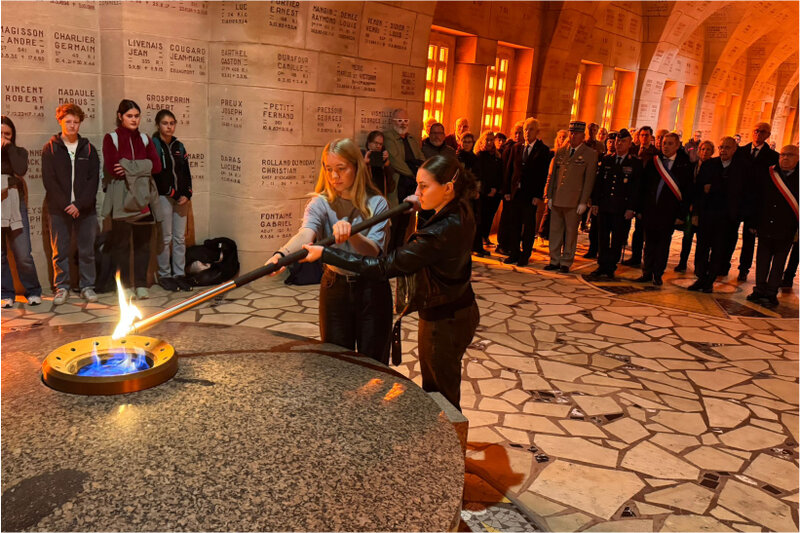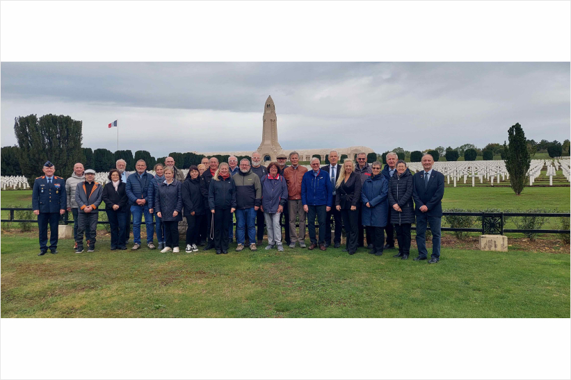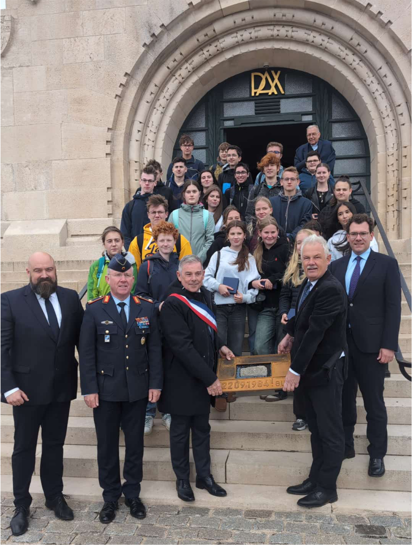 46 Teilnehmer machten sich zum 41. Jahrestag der berühmten Geste von Verdun, dem Händedruck von Bundeskanzler Helmut Kohl und Staatspräsident Francois Mitterrand, für drei Tage auf den Weg nach Verdun. Der Verein Partnerschaft des Friedens Rheinbach / Douaumont-Vaux hatte zur jährlichen Bürgerfahrt eingeladen. Unter der fachkundigen Führung von Peter Baus wurden die markanten Orte des Ersten Weltkrieges bei Verdun erkundet. Die Busreise begann mit dem Besuch der Ehrenhalle und der deutschen Kriegsgräberstätte Gravelotte bei Metz, sowie dem dortigen Museum zum deutsch-Französischen Krieg 1870/1871. 12 Schüler des Städtischen Gymnasiums begleiteten mit zwei Lehrern die Fahrt. Stefan Raetz, Vorsitzender des Vereins: „Ziel ist es immer mit den Fahrten auf den Irrsinn von Krieg und Zerstörung hinzuweisen und Verdun nicht nur als Schlachtfeld, sondern auch als Gedenkstätte und Versöhnungsort zu begreifen“. In dem Festungswerk Ouvrage de la Falouse konnte anschaulich das Alltagsleben der damals dort stationierten Truppen erlebt werden. Bei einem Festakt am Beinhaus von Douaumont, in dem 130.000 Gebeine von Gefallenen der Schlacht von Verdun liegen, entzündete die Rheinbacher Schülerin Anouk Maurer mit einer Schülerin aus Verdun die Flamme für den unbekannten Soldaten. Der Bischof von Verdun, Jean-Paul Gusching, überreichte mit Armand Falque, dem Bürgermeister von Douaumont-Vaux, der Partnerschaft des Friedens für die Stadt Rheinbach eine Eisenplatte mit eingelassenem Pflasterstein. Dieses Kunstwerk erinnert an die Stelle an der Helmut Kohl und Francois Mitterrand sich die Hand gaben. Der Pflasterstein ist der, auf dem die beiden Staatsmänner 1984 standen. Es gibt nur drei Exemplare für Rudolstadt, der Stadt in der Francois Mitterrand in Kriegsgefangenschaft war, Rheinbach und Berlin. Stefan Raetz nahm das besondere Geschenk an und versprach einen geeigneten Platz in Rheinbach zu finden. Die Schüler des Städtischen Gymnasiums nahmen mit Schülern aus Verdun an einem Europa-Symposium teil und verabredeten weitere gemeinsame Projekte. Im Fort Douaumont gedachten die Reiseteilnehmer an der Bronzestatue „Der Abschied“ vom Rheinbacher Pater Ludwig der Kriegstoten. Den Abschluss bildete die Besuche der Höhe „Toter Mann“, der US-Gedänkstätte Montfaucon, der US-Kriegsgräberstätte Romagne-sous-Montfaucon, der deutschen Kriegsgräberstätte Épinonville und der Minenkrieglandschaft von Vauquois. Stefan Raetz: „Es war erneut eine emotionale Fahrt, die uns aufzeigt wie wichtig die Freundschaft mit Frankreich für ein geeintes und friedliches Europa ist“. Im November findet zum Jahrestag des Endes des Ersten Weltkrieges die nächste Schülerfahrt statt. Die Delegation wird Teil der Feierlichkeiten in Verdun sein. Die nächste Bürgerfahrt ist schon in Planung. Im Juni 2026 geht es erneut nach Verdun und Douaumont-Vaux.
