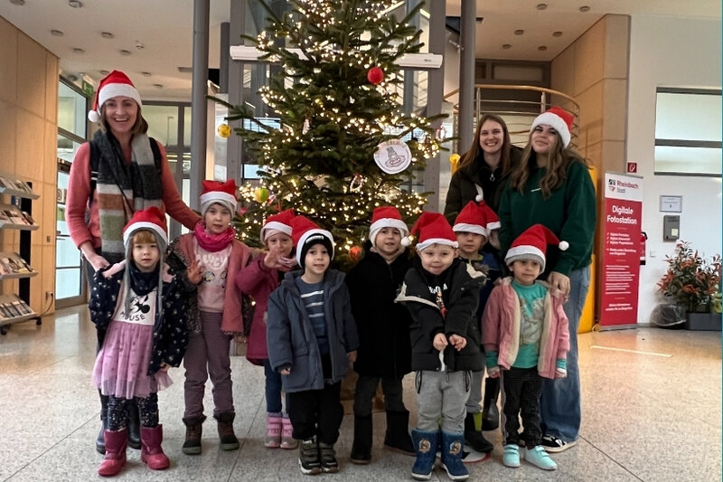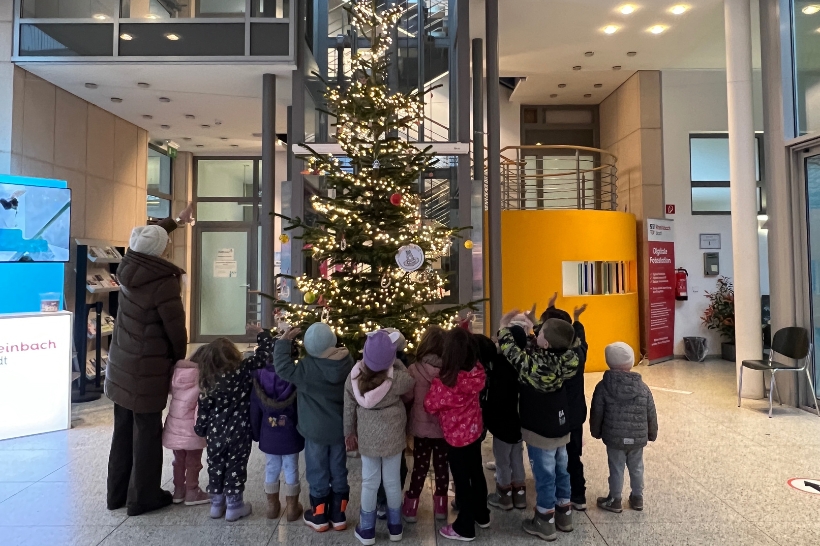 Dass der Weihnachtsbaum im Rathaus auch in diesem Jahr festlich geschmückt ist, verdanken wir den Kindergartenkindern der städtischen Tageseinrichtungen für Kinder "Lummerland", “Hopsala”, und “Stadtpark”.