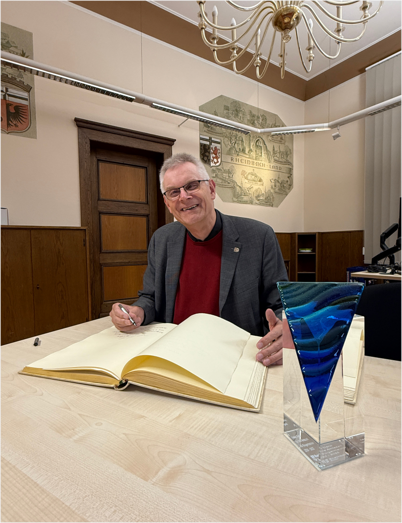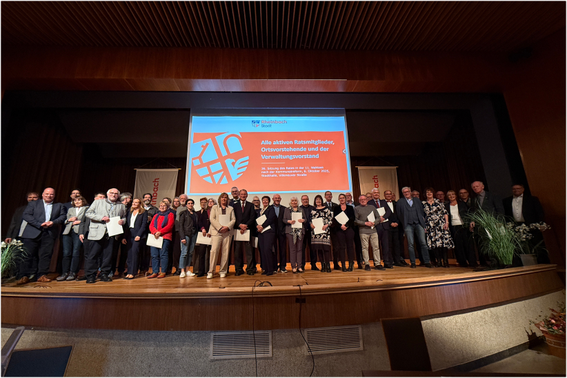 Neben Bürgermeister Ludger Banken wurden weitere 26 Ratsmitglieder und Ortsvorstehende mit fast 300 Jahren kommunalpolitischer Erfahrung verabschiedet. Diese wurden im Rahmen der Sitzung persönlich mit Dankurkunden gewürdigt. Zudem wurden die wichtigsten Stationen und Funktionen ihres Engagements vorgestellt – ein Moment des Respekts und der Anerkennung für vielfach jahrzehntelange ehrenamtliche Arbeit für Rheinbach. Bürgermeister Ludger Banken und alle aktiven Ratsmitglieder und Ortsvorstehende hatten beim anschließenden Empfang im Foyer der Stadthalle die Gelegenheit, sich in das Goldene Buch der Stadt Rheinbach einzutragen.