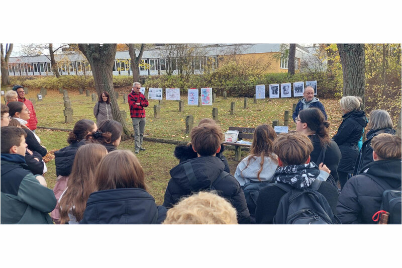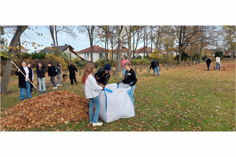 Jährlich lädt der Verein Partnerschaft des Friedens Rheinbach / Douaumont-Vaux vor dem Volkstrauertag zur Säuberungsaktion auf der Rheinbacher Kriegsgräberstätte ein. Es nahmen in der morgendlichen Freistunde Schüler des St. Joseph Gymnasiums und am Nachmittag 30 Schüler der Klasse 9.3 der Gesamtschule Rheinbach teil. Auch Vereinsmitglieder beteiligten sich an der Aktion. Ziel war es den Schülern den Soldatenfriedhof näherzubringen und ihn zum Volkstrauertag von Laub und Ästen zu befreien. Der Betriebshof der Stadt Rheinbach stellte das notwendige Werkzeug. Die Schüler waren eifrig dabei auch das letzte Blatt mit dem Rechen einzufangen. Stefan Raetz, Vorsitzender des Partnerschaftsvereins: "Wichtig ist es aber auch den Schülern zu erläutern, was eine Kriegsgräberstätte ist und zu zeigen, wer hier alles seine letzte Ruhestätte gefunden hat". Militärhistoriker Peter Baus führte die interessierte Schülergruppe über den Friedhof. Die Schüler erlebten, dass viele Kriegstote, die auf der Rheinbacher Kriegsgräberstätte beigesetzt sind, kaum älter als sie selber waren. Insgesamt war es erneut eine gelungene Aktion der Partnerschaft des Friedens mit und für Schüler in Rheinbach.