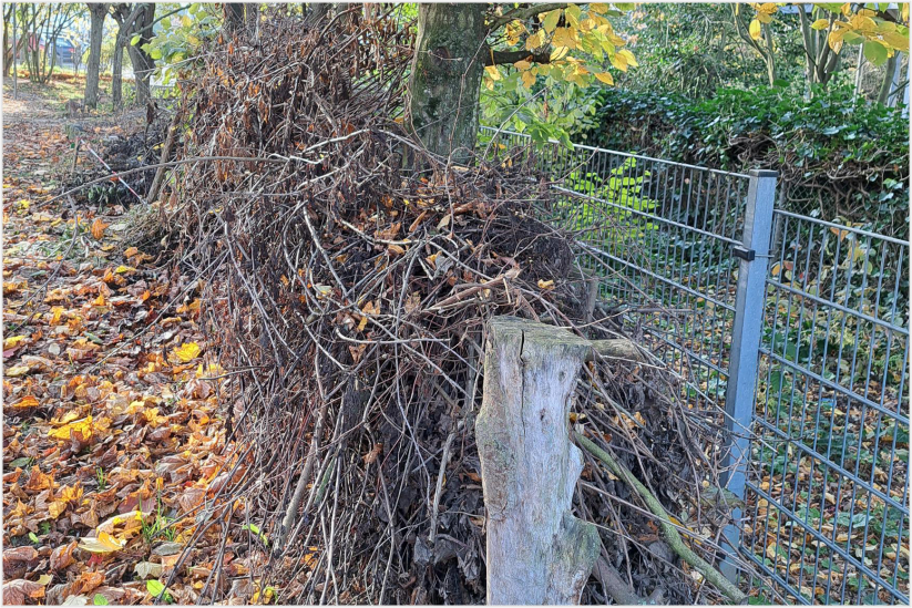 Der Naturkindergarten wird für das in diesem Jahr realisierte Projekt – das Anlegen einer Naturhecke – ausgezeichnet. Durch den Rückschnitt von Gehölzen hatten sich neben viel Laub auch Äste und Zweige angesammelt. Diese natürlichen Abfälle wurden dazu verwendet, auf dem Kita-Gelände eine Naturhecke anzulegen, damit verschiedene Tiere (Igel, Insekten) darin Unterschlupf finden und nisten können. Damit die Tiere nicht gestört werden, wurde die Hecke am Rand des Spielgeländes errichtet. Sie wurde so gebaut, dass die Kinder sie von beiden Seiten beobachten können.