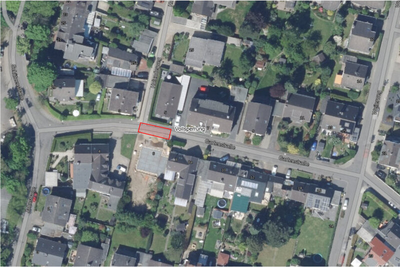 Aufgrund von Hausbauarbeiten, wird die Gartenstraße in Rheinbach vor Hausnummer 6 am 20. Oktober 2025 in der Zeit von 08:00 Uhr bis 18:00 Uhr für den Verkehr gesperrt.
