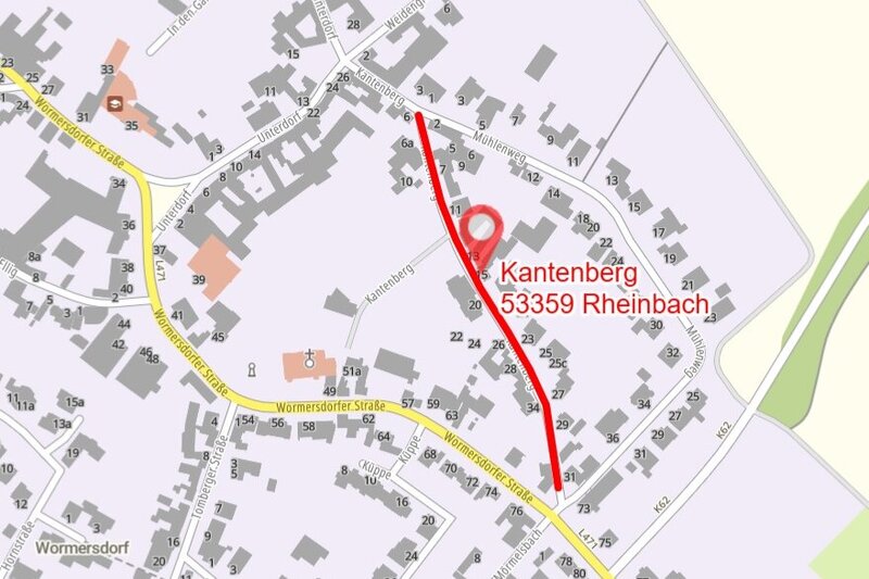 Aufgrund erforderlicher Asphaltarbeiten wird die Straße Kantenberg in Rheinbach-Wormersdorf im Bereich von der Ecke Mühlenweg bis zur Einmündung Wormersdorfer Straße in der Zeit vom 19.11.2025 bis einschließlich zum 26.11.2025 für den Verkehr gesperrt.