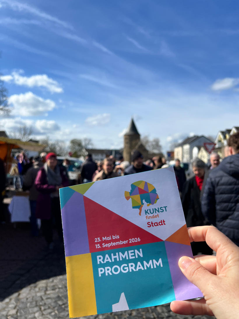 Kunst findet Stadt verwandelt die Rheinbacher Innenstadt in einen offenen Ausstellungsraum: Künstler*innen präsentieren ihre Werke an öffentlichen Orten und machen Kunst im Alltag erlebbar.