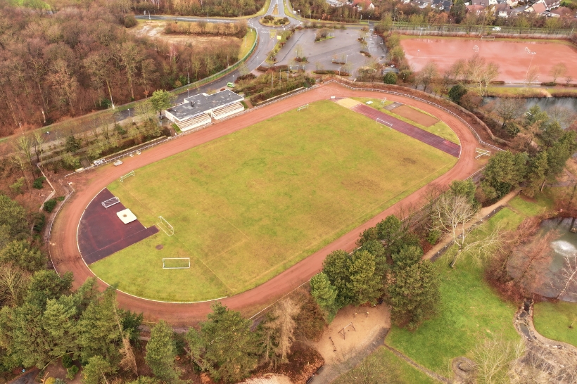 - geplante Maßnahmen: Komplettsanierung der Rasenfläche samt Unterbau und Beregnungsanlage; Neuerrichtung der Umlaufbahn mit Kunststoffbelag einschließlich der leichtathletischen Segmente, Erweiterung um Stabhochsprunganlage inklusive Matte und Abdeckung; Erneuerung der gepflasterten Bereiche und des den Innenraum umgebenden Geländers; Errichtung einer neuen Flutlichtanlage; Modernisierung der Stromversorgung; Schaffen neuer Lagergaragen