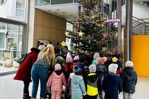 Städtische Kitas schmücken den Weihnachtsbaum im Rathaus