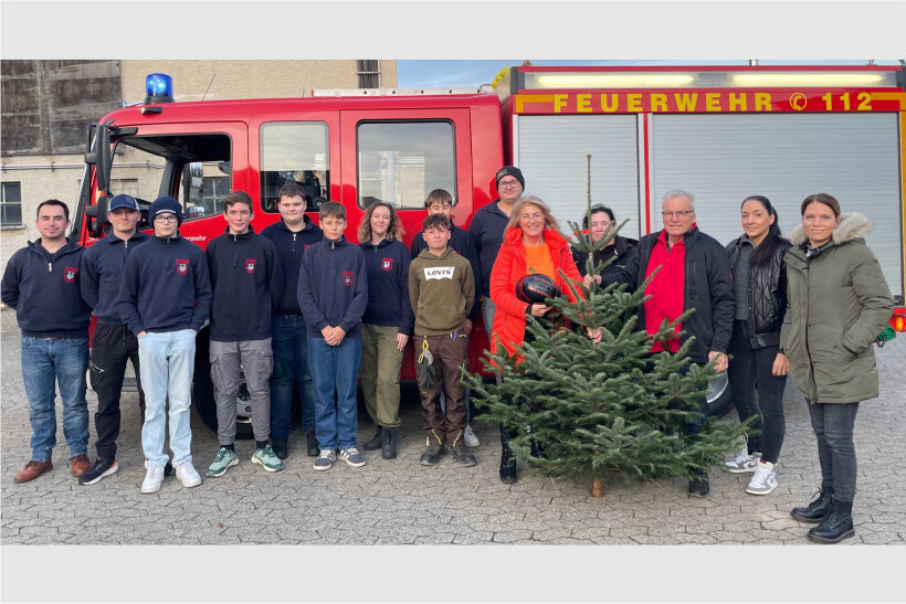 Eine Spende von 800 Euro für die Jugendfeuerwehr Wormersdorf durch die Lieferung von Weihnachtsbäumen