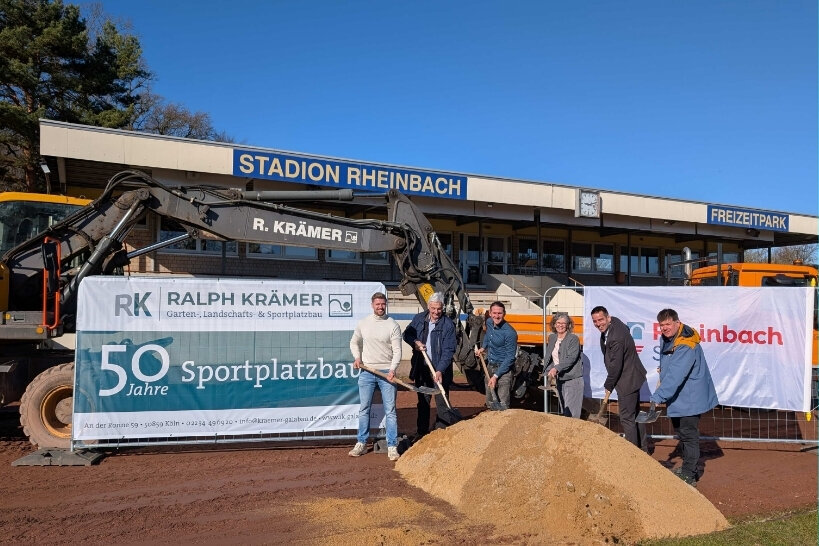 Bürgermeister Dr. Daniel Phiesel setzt Spatenstich für Erneuerung von Rasenplatz, Laufbahn und Flutlichtanlage