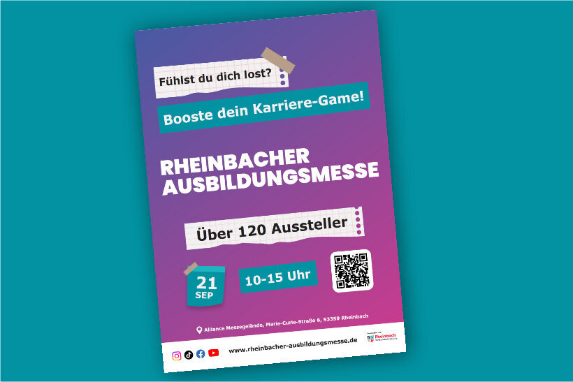 Am Samstag, 20. September 2025, findet von 10:00 bis 15:00 Uhr im Alliance-Messegebäude, Marie-Curie-Str. 6, wieder die Rheinbacher Ausbildungsmesse statt. Über 120 Aussteller aus der Region stellen…