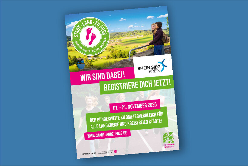 Gemeinsam Schritte sammeln – Der Rhein-Sieg-Kreis ist 2025 bei der Aktion „Stadt – Land – zu Fuß“ dabei!