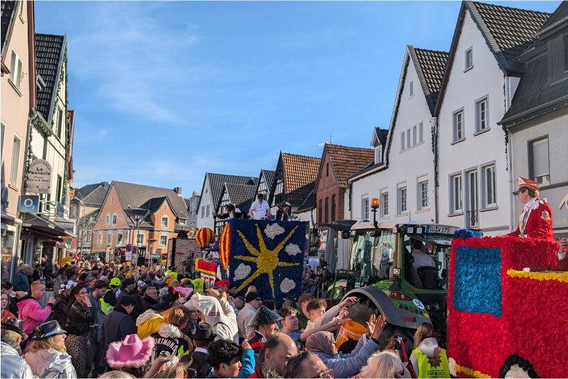 Es war wieder eine phantastischen Stimmung am Zugrand und unter den rund 1.000 Teilnehmenden. Knapp drei Stunden lang nahmen große und kleine Jecken zu Fuß und auf Prunkwagen ein Bad in…